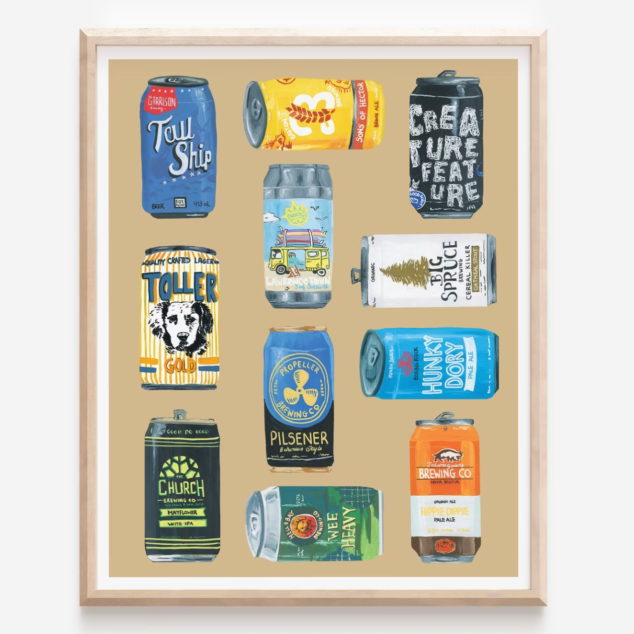 Print of original paintings by Janna Wilton Art. This design depicts 11 local Breweries located in Nova Scotia, Canada and some of their favorite beers! Breweries and Beers included are listed below.