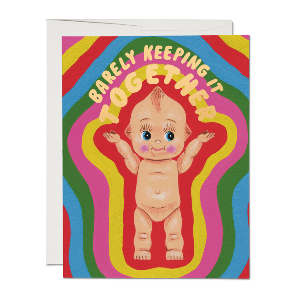 Red Cap Cards Greeting Card - Barely Keeping It Together Kewpie