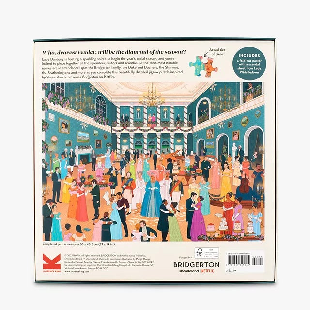 1000-PIECE PUZZLE: Piece together the world of Bridgerton in this official jigsaw puzzle published in collaboration with Shondaland and Netflix. The perfect challenge for fans of the show - or anyone who loves a good jigsaw