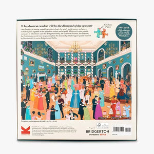 Lady Danbury is hosting a sparkling soirée to begin the year's social season, and you're invited to piece together all the splendour, suitors and scandal. All the ton's most notable names are in attendance: spot the Bridgerton family, the Duke and Duchess, the Sharmas, the Featheringtons and more as you complete this beautifully detailed jigsaw puzzle inspired by Shondaland's hit series Bridgerton on Netflix.