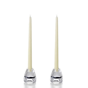 Hand-dipped 12" taper candles. Outer layer made from highest quality, food grade paraffin wax with an all cotton wick. Inside of candle remains white for clean, smokeless, and dripless burning.