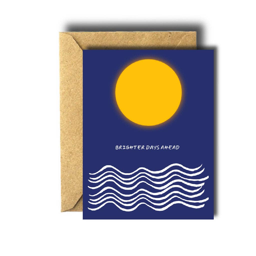 Single A2 folded card. Size is 4.25 x 5.5 inches. A2 Kraft Envelope (Size 4 3/8 x 5 3/4). Blank Inside. Enclosed in Recyclable Cello Sleeve. Printed on white, FSC Certified Matte Cover Stock.