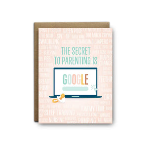 Perfect for: first time parents, chronic worriers, fans of internet advice. Sized 4.25" x 5.5" / Blank inside. Printed on FSC-certified 100lb uncoated stock. Recycled brown kraft envelope. Envelope sticker. Packaged in a cellophane bag.