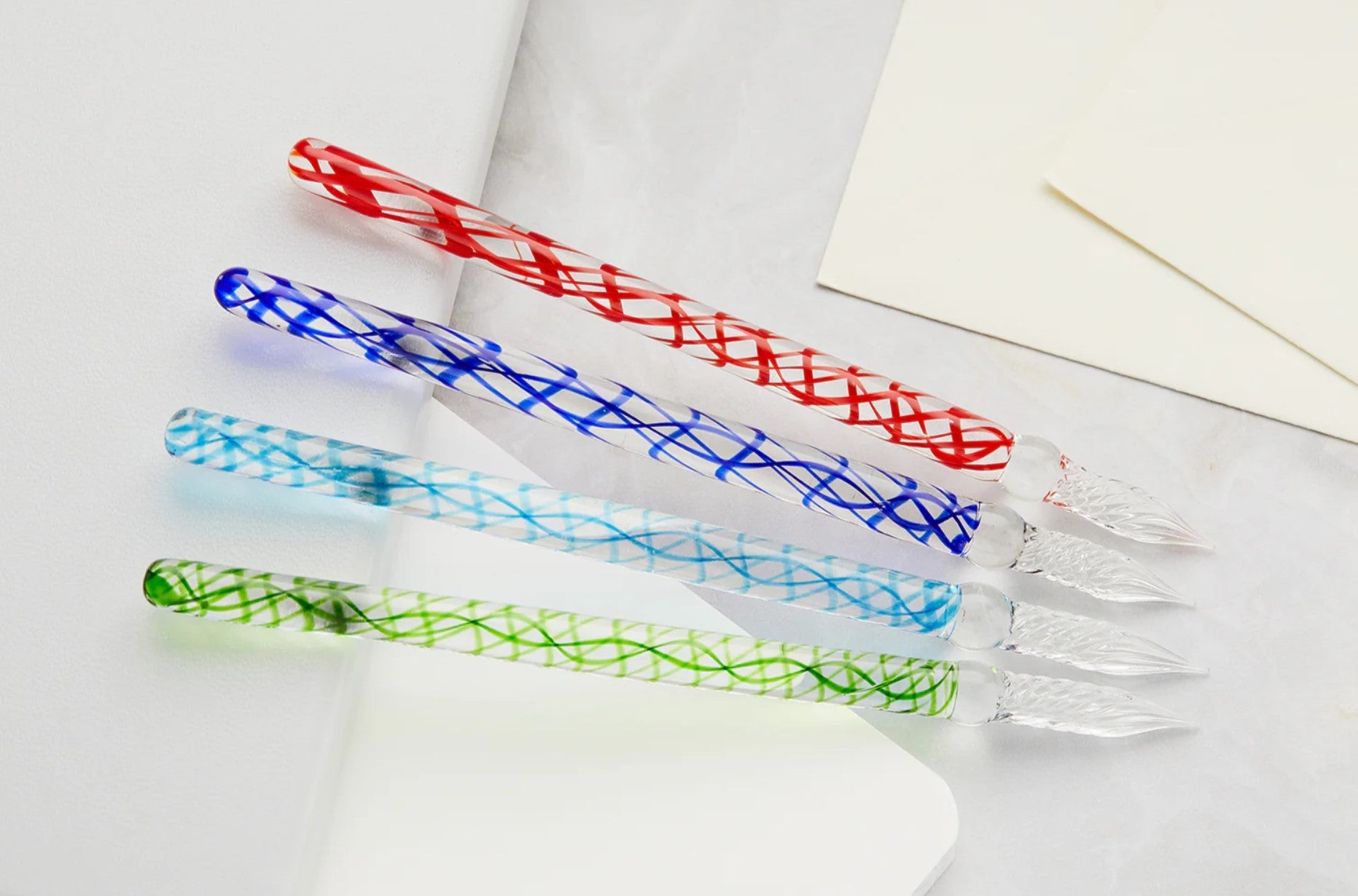 The J. Herbin glass dip pens are ornamental desk accessories that are functional for longer writing than most other dip pens. The grooves in the pens allow the nib to load with more ink, a fascinating process tow watch as it travels onto your page. Each pen is hand crafted producing a unique tool to enjoy. Fine sand paper (grade 400) is safe to us when the nib is blunt or needs a slight reshaping to bring it back to it's best self.