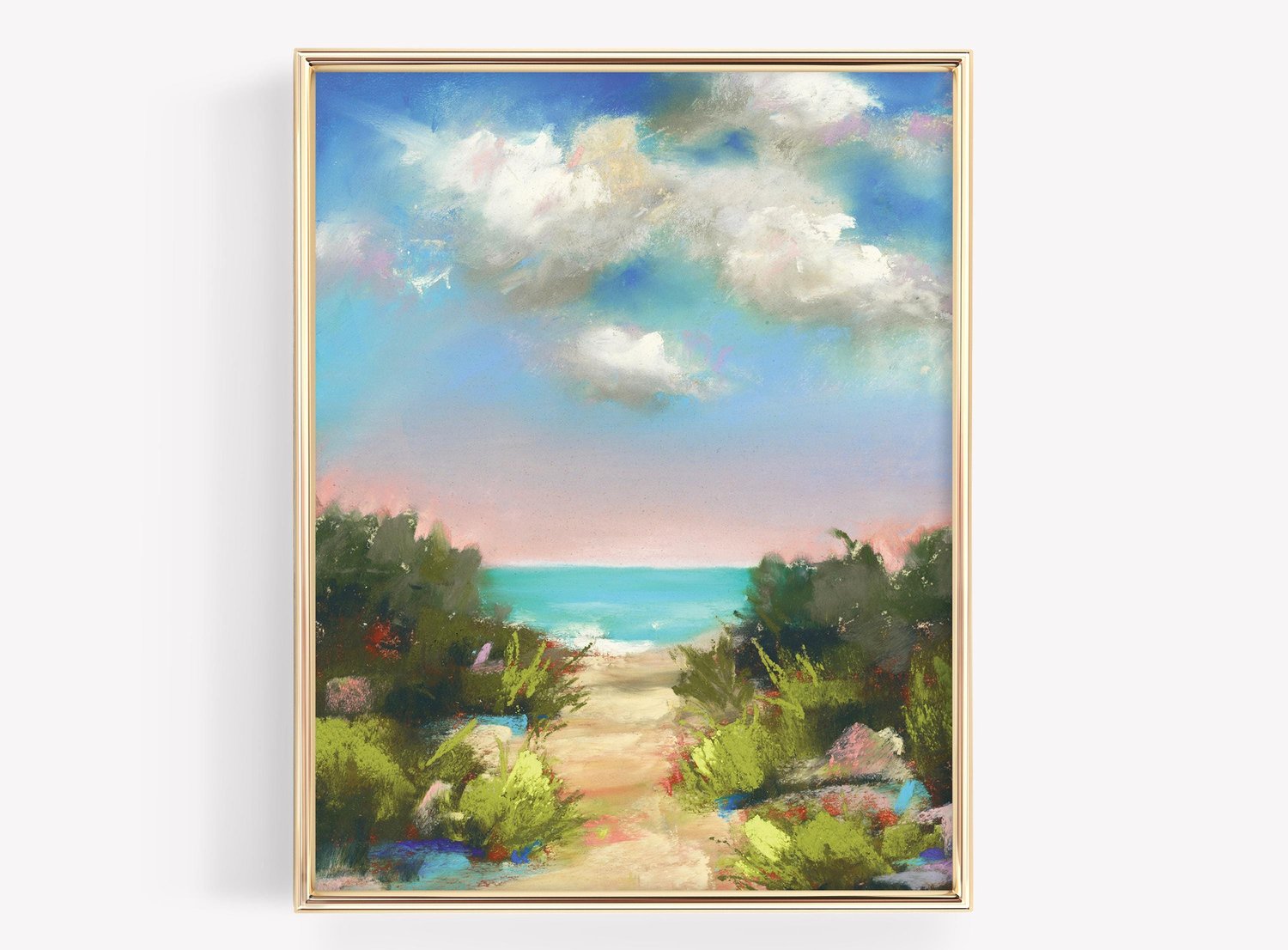 Print of original pastel painting by Janna Wilton Art. A painting inspired by growing up playing on Crystal Crescent Beach. It's icy waters, white sand and turquoise blue waters are always good for the soul!
