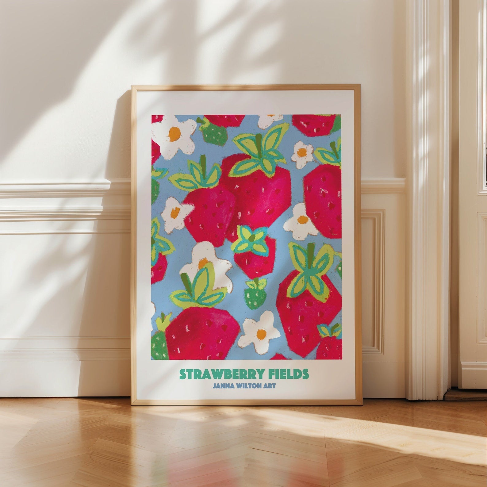 Print of original pastel painting by Janna Wilton Art. A painting inspired by childhood memories of picking strawberries!