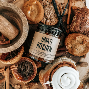 Crafted to envelop your space in a comforting embrace, the Oma's Kitchen Candle is more than just a fragrance; it's a heartfelt reminder of the love and traditions passed down through generations. Perfect for creating a serene atmosphere or as a thoughtful gift for someone special, this candle is a celebration of family, love, and the sweet moments that last a lifetime.