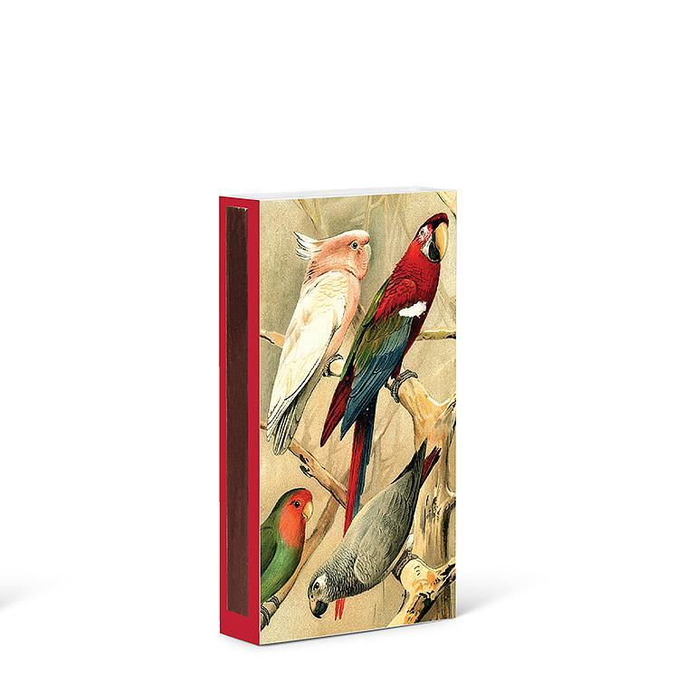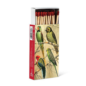 Fire up everything from chimineas to candles or fireplaces in uncommon style with this handsome pack of Exotic Parrots Matches. Designed exclusively for Abbott by The Dybdahl Co. – Scandinavian heritage adventurers – this matchbox features a colourful painting of various parrot breeds rendered in highly detailed, classic archival style. Matchbox includes 45 matchsticks.
