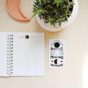 Moon Study is a simple moon phase reflection journal. With minimal structure and instruction, this lightly guided journal is meant to serve as an open container for freely noticing, reflecting & discovering.