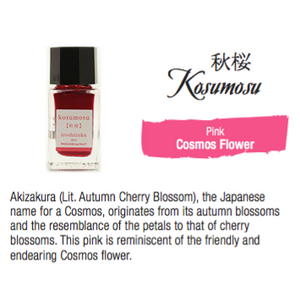 Akizakura (Lit. Autumn Cherry Blossom), the Japanese name for a Cosmos, originates from its autumn blossoms and the resemblance of the petals to that of cherry blossoms. This pink is reminiscent of the friendly and endearing Cosmos flower.