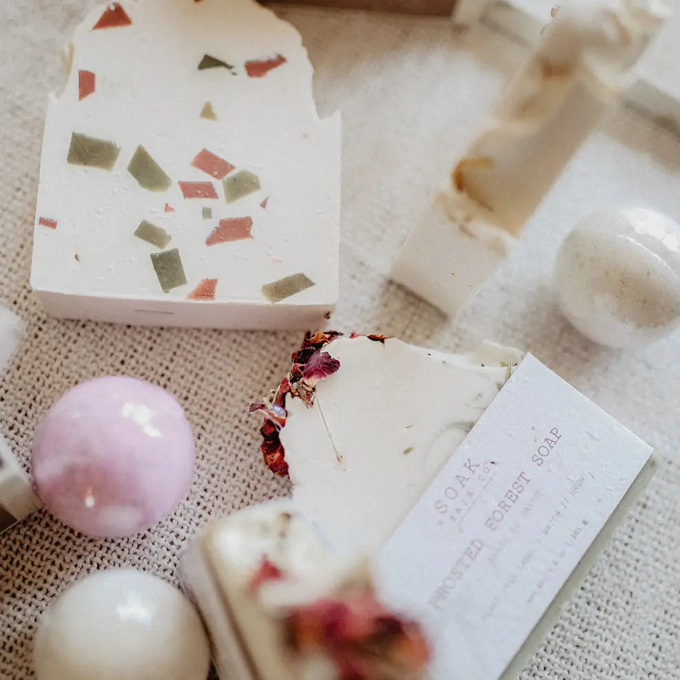 The Merry and Bright Soap bar is inspired by the sights, sounds and smells of the holiday season. Scented with Peppermint and Rosemary Essential Oils this soap bar captures minty notes with the herbal infusion of Rosemary to recreate the scents of walking through an evergreen forest. They've sprinkled in festive pops of berry and green to make this bar as merry as the season. Merry and Bright is a must-have this holiday season!