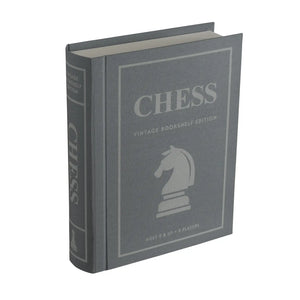The game box is a fabric-wrapped book with integrated storage. A themed slipcase covers and protects the game box. Inside you'll find a full-sized game board that folds up for storage and the following accessories: 32 wood chess pieces: 16 dark and 16 light, 2 fabric pouches.